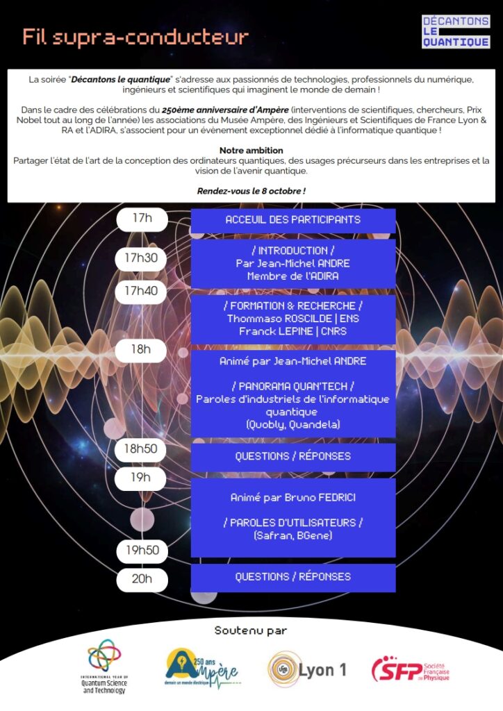 Dans le cadre des célébrations du 250ème anniversaire d’Ampère (interventions de scientifiques, chercheurs, Nobels tout au long de l’année) les associations du Musée Ampère, des Ingénieurs et Scientifiques de France Lyon & RA et l’ADIRA, s’associent pour un évènement exceptionnel dédié à l’informatique quantique !