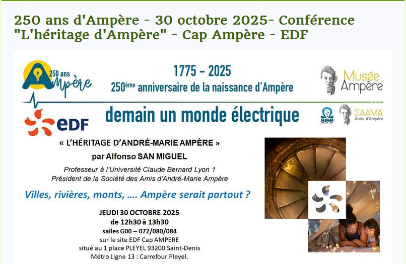 Professeur à l’Université Claude Bernard Lyon 1, Président de la SAAMA« L’HÉRITAGE D’ANDRÉ-MARIE AMPÈRE